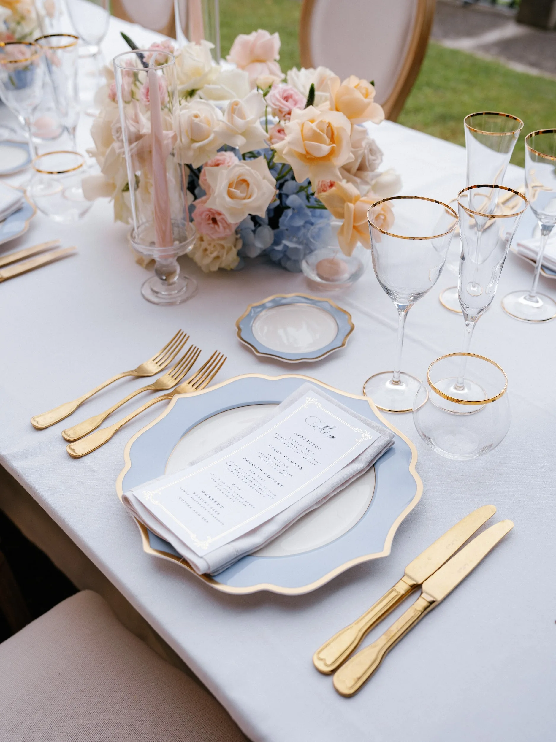 The bride envisioned a tablescape unlike any other, featuring Ginori porcelain as used at Gucci Osteria by Massimo Bottura.
